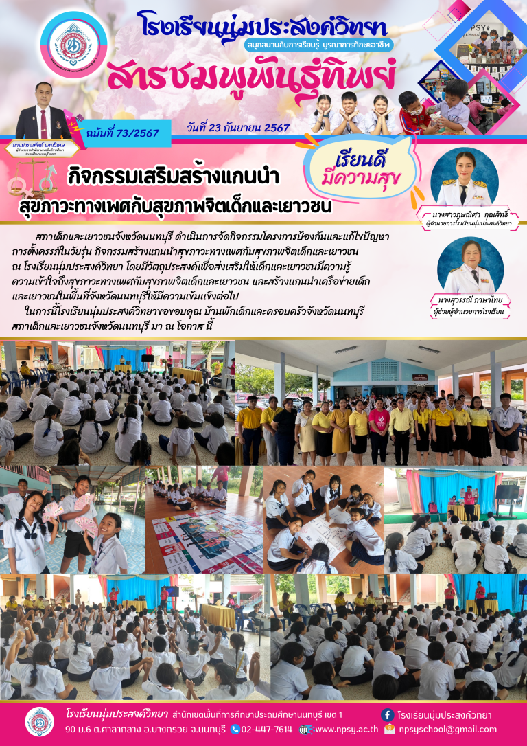 กลุ่มโรงเรียนอำเภอบางกรวยกิจกรรมเสริมสร้างแกนนำสุขภาวะทางเพศกับสุขภาพจิตเด็กและเยาวชน23 กันยายน 202428 พฤศจิกายน 2024โรงเรียน นุ่มประสงค์อ่านต่อ