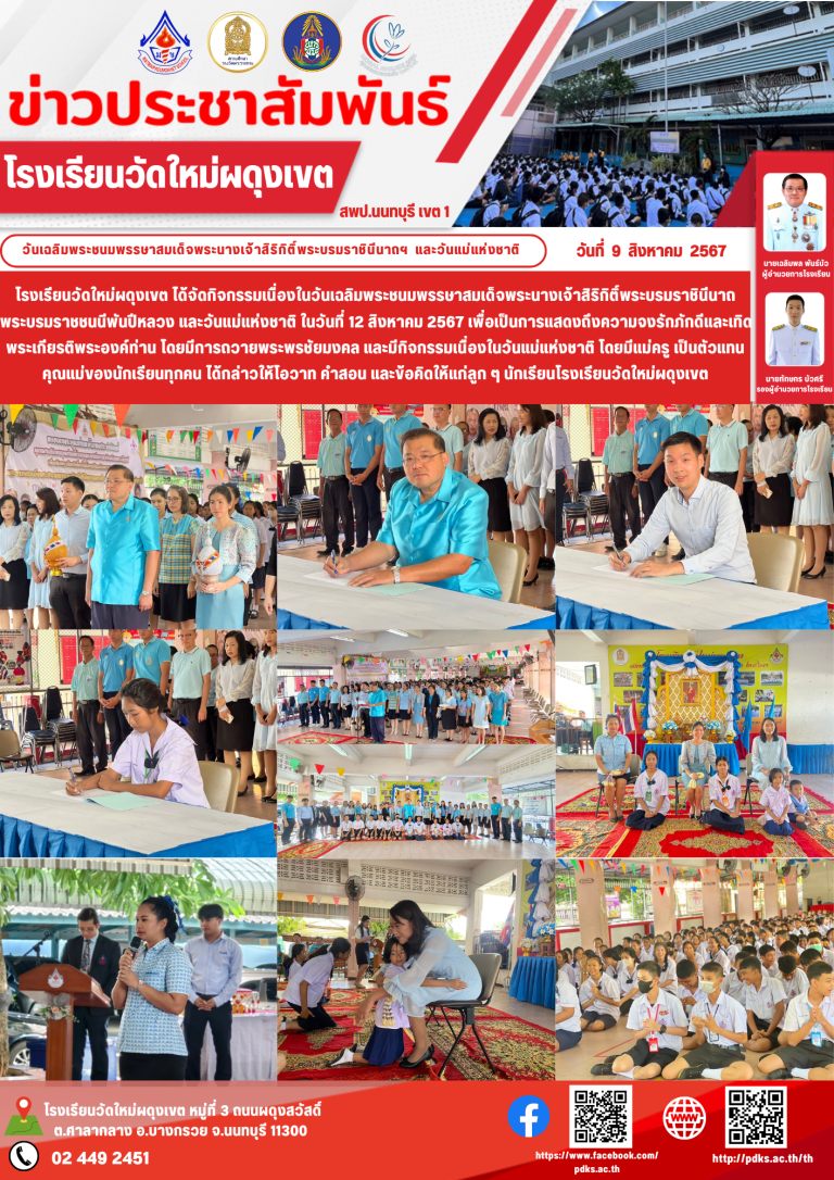 กลุ่มโรงเรียนอำเภอบางกรวยวันเฉลิมพระชนมพรรษาสมเด็จพระนางเจ้าสิริกิติ์พระบรมราชินีนาถฯ และวันแม่แห่งชาติ9 สิงหาคม 202425 ตุลาคม 2024โรงเรียน วัดใหม่ผดุงเขตอ่านต่อ