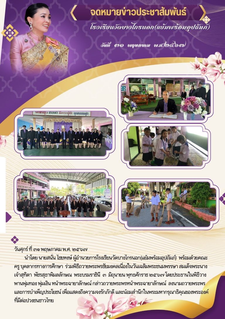 กลุ่มโรงเรียนอำเภอบางกรวยพิธีถวายพระพรชัยมงคลเนื่องในวันเฉลิมพระชมพรรษา สมเด็จพระนางเจ้าสุทิดา พัชรสุธาพิมลลักษณ พระบรมราชินี11 มิถุนายน 202411 มิถุนายน 2024โรงเรียน วัดบางไกรนอก(แย้มพร้อมอุปถัมภ์)อ่านต่อ