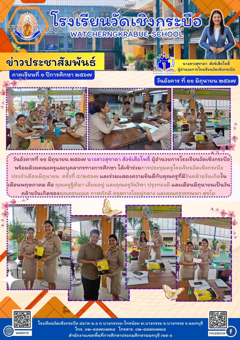 กลุ่มโรงเรียนอำเภอบางกรวยประชุมคณะครูและบุคลากรทางการศึกษา โรงเรียนวัดเชิงกระบือ ประจำเดือนมิถุนายน 256712 มิถุนายน 2024วัดเชิงกระบือ โรงเรียนอ่านต่อ