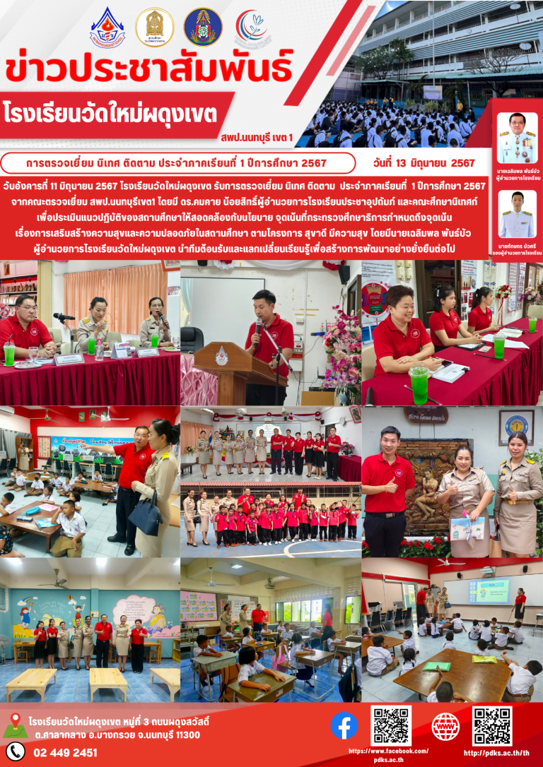 กลุ่มโรงเรียนอำเภอบางกรวยการตรวจเยี่ยม นิเทศ ติดตาม ประจำภาคเรียนที่ 1 ปีการศึกษา 256713 มิถุนายน 202425 ตุลาคม 2024โรงเรียน วัดใหม่ผดุงเขตอ่านต่อ