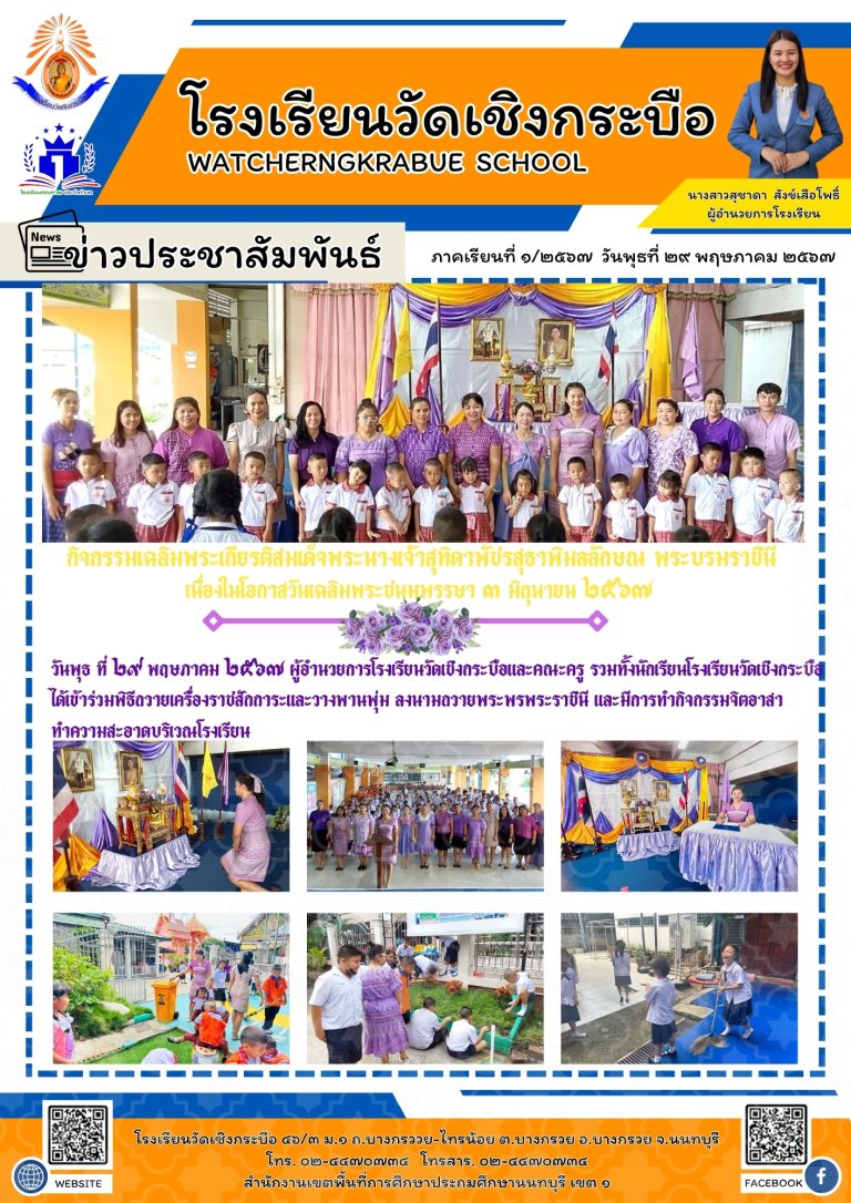 กลุ่มโรงเรียนอำเภอบางกรวยพิธีถวายพระชัยมงคล สมเด็จพระเจ้าสุทิตา พัชรสุธาพิมลลักษณพระบรมราชินี3 มิถุนายน 20248 กันยายน 2024อนุบาลบางกรวย(วัดศรีประวัติ) โรงเรียนอ่านต่อ