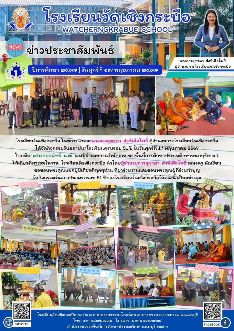 กลุ่มโรงเรียนอำเภอบางกรวยกิจกรรมวันสถาปนาโรงเรียนวัดเชิงกระบือ ครบรอบ 51 ปี17 พฤษภาคม 202410 มิถุนายน 2024วัดเชิงกระบือ โรงเรียนอ่านต่อ