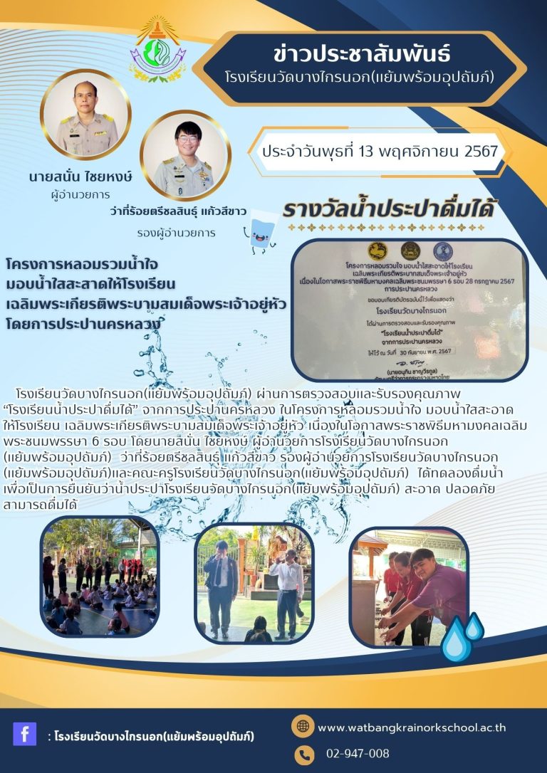 กลุ่มโรงเรียนอำเภอบางกรวยโรงเรียนวัดบางไกรนอก(แย้มพร้อมอุปถัมภ์)ได้การตรวจสอบและรับรองคุณภาพ “โรงเรียนน้ำประปาดื่มได้ จากการประปานครหลวง”13 พฤศจิกายน 202413 พฤศจิกายน 2024โรงเรียน วัดบางไกรนอก(แย้มพร้อมอุปถัมภ์)อ่านต่อ