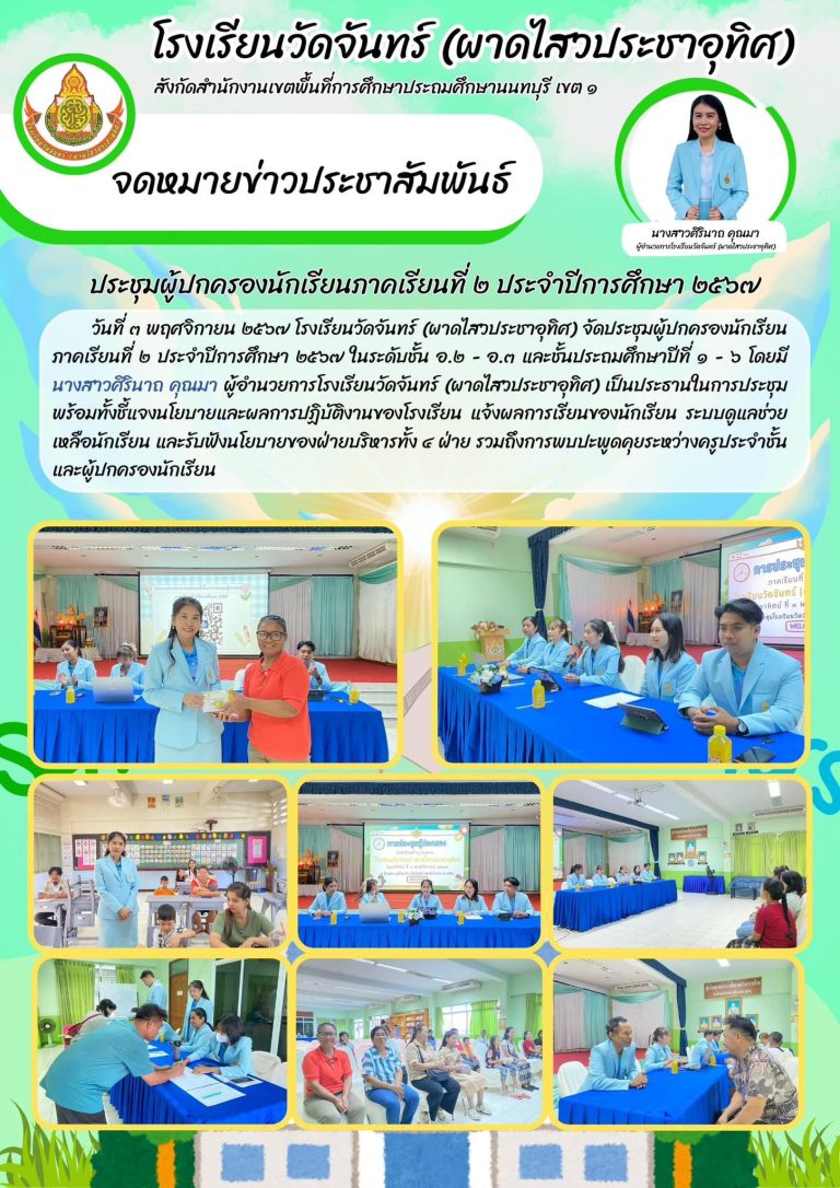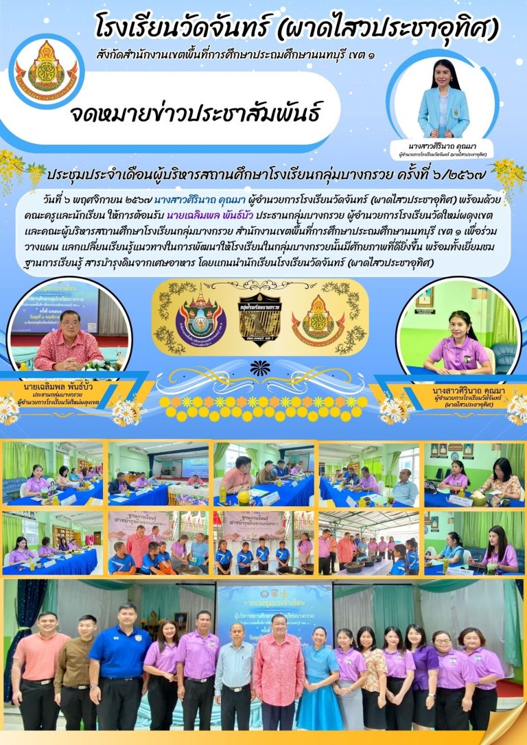 กลุ่มโรงเรียนอำเภอบางกรวยจัดประชุมผู้ปกครองนักเรียนภาคเรียนที่ ๒7 พฤศจิกายน 2024วัดจันทร์(ผาดไสวประชาอุทิศ) โรงเรียนอ่านต่อ