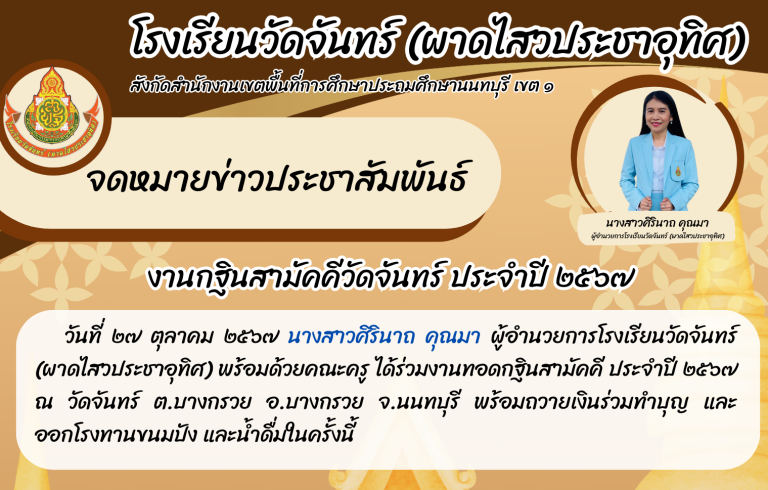 กลุ่มโรงเรียนอำเภอบางกรวยงานทอดกฐินสามัคคี ประจำปี ๒๕๖๗28 ตุลาคม 202428 ตุลาคม 2024วัดจันทร์(ผาดไสวประชาอุทิศ) โรงเรียนอ่านต่อ