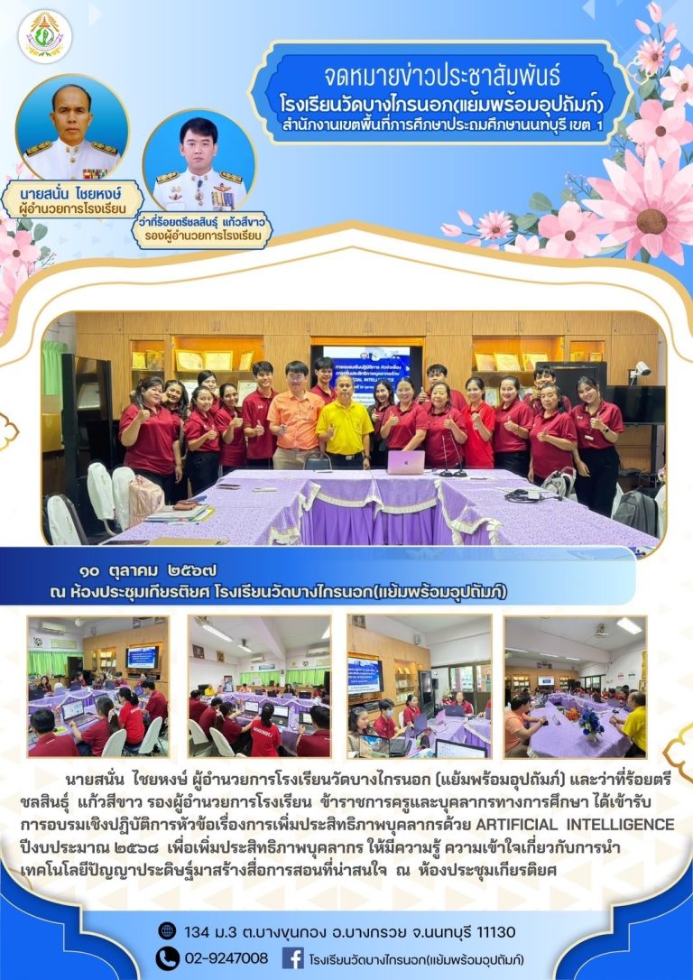 กลุ่มโรงเรียนอำเภอบางกรวยโรงเรียนวัดบางไกรนอก(แย้มพร้อมอุปถัมภ์) จัดการอบรมเชิงปฏิบัติการหัวข้อเรื่องการเพิ่มประสิทธิภาพบุคคลากรด้วย Artificial Intelligence ปีงบประมาณ 256731 ตุลาคม 202431 ตุลาคม 2024โรงเรียน วัดบางไกรนอก(แย้มพร้อมอุปถัมภ์)อ่านต่อ