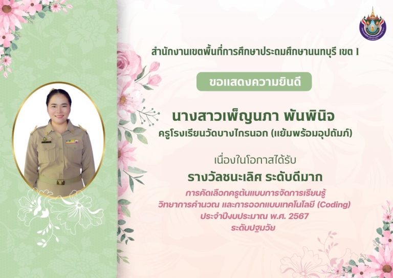 กลุ่มโรงเรียนอำเภอบางกรวยแสดงความยินดีครูเพ็ญนภา พันพินิจ ครูโรงเรียนวัดบางไกรนอก(แย้มพร้อมอุปถัมภ์) ได้รับรางวัลชนะเลิศ ระดับดีมาก การคัดเลือกครูต้นแบบการจัดการรียนรู้วิทยาการคำนวณ และการออกแบบเทคโนโลยี ประจำปีงบประมาณ 256731 ตุลาคม 2024โรงเรียน วัดบางไกรนอก(แย้มพร้อมอุปถัมภ์)อ่านต่อ