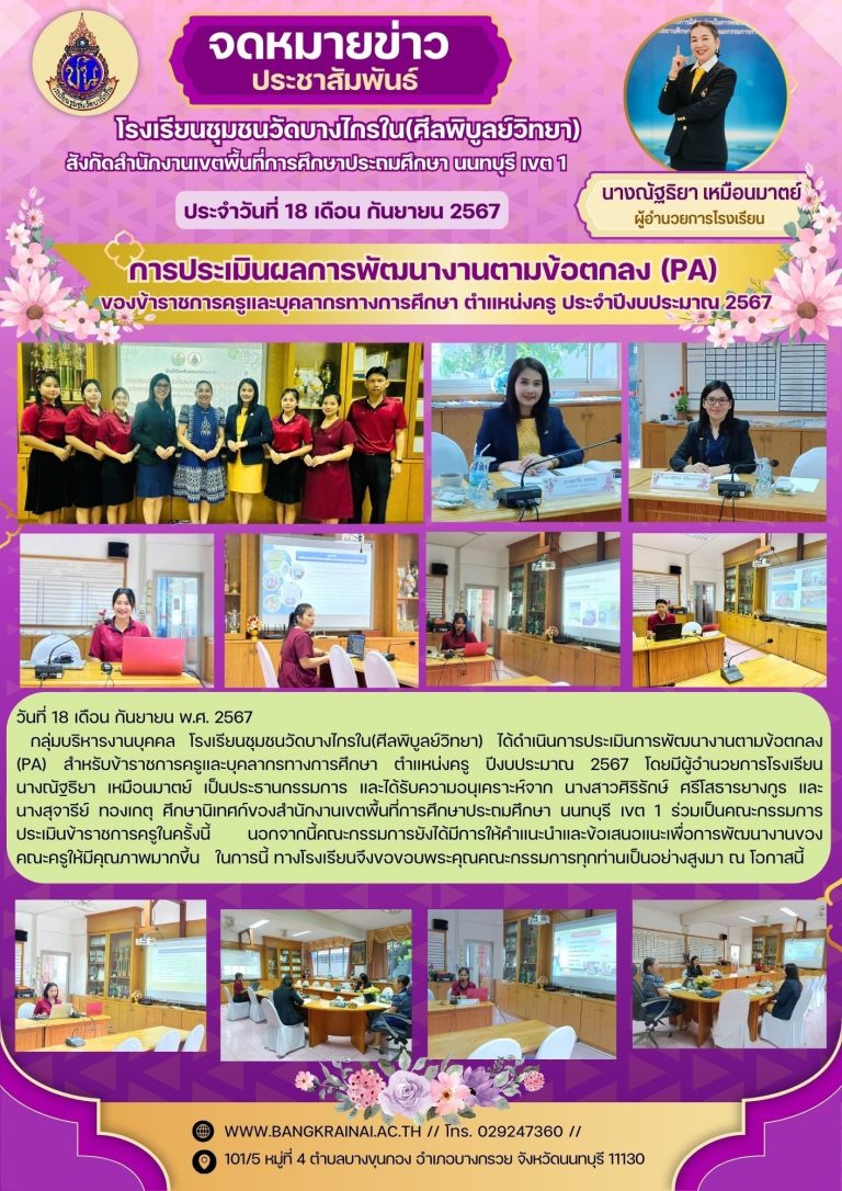 กลุ่มโรงเรียนอำเภอบางกรวยการประเมินผลการพัฒนางานตามข้อตกลง (PA)26 กันยายน 202426 กันยายน 2024ชุมชนวัดบางไกรใน(ศีลพิบูลย์วิทยา) โรงเรียนอ่านต่อ