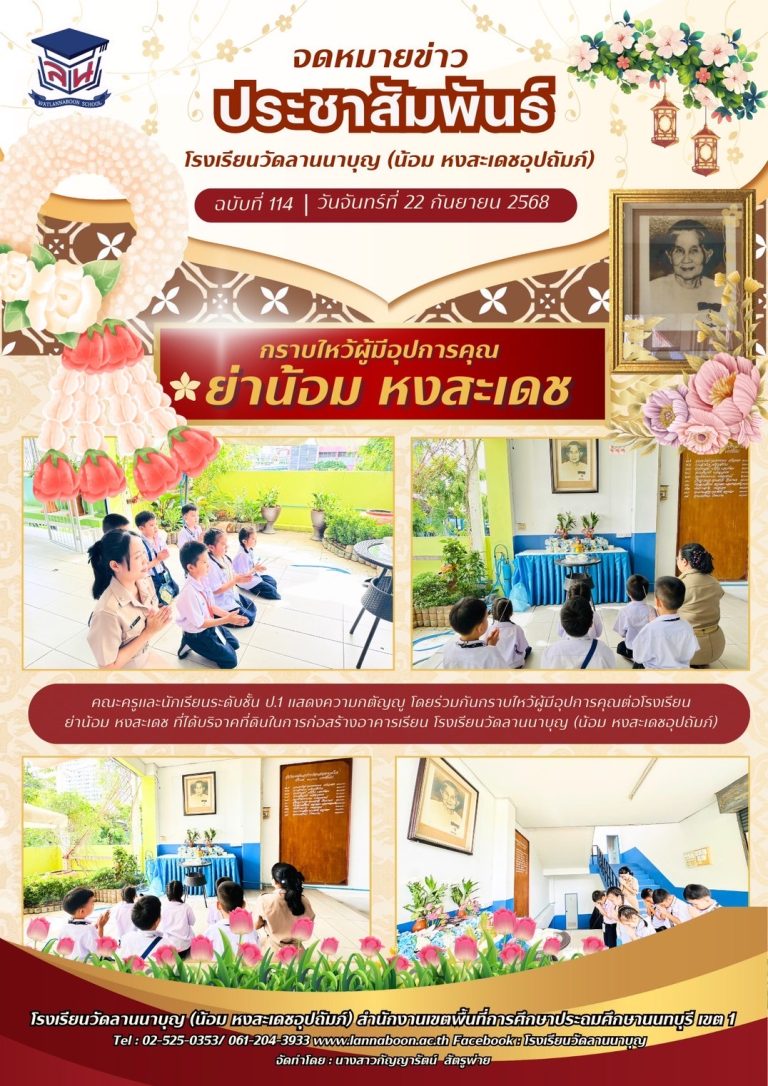 กลุ่มโรงเรียนเมืองนนท์ 1“กราบไหว้ผู้มีอุปการคุณ ย่าน้อม หงสะเดช”22 กันยายน 202527 กันยายน 2025วัดลานนาบุญ (น้อม หงสะเดชอุปถัมภ์) โรงเรียนอ่านต่อ