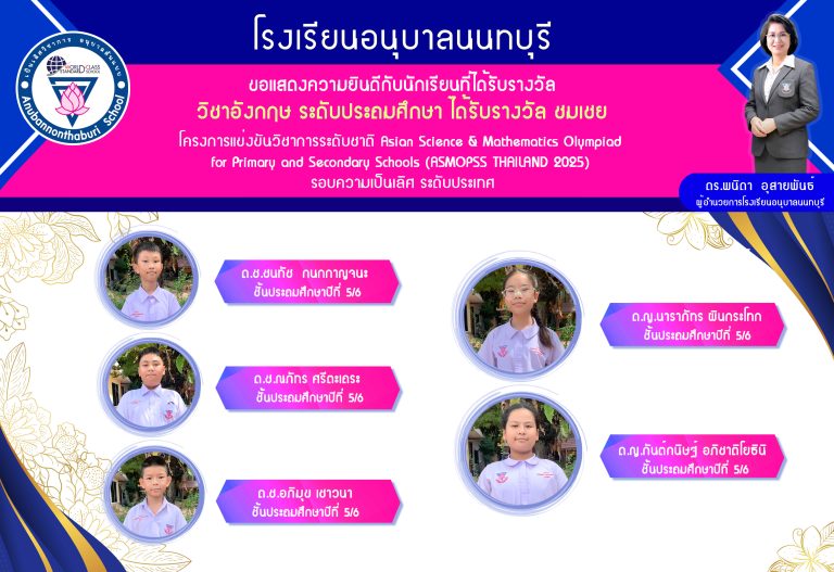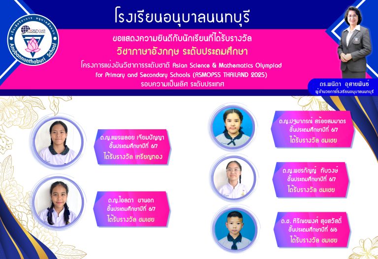 กลุ่มโรงเรียนเมืองนนท์ 1การแข่งขัน อังกฤษ asmopss thailand 2025 ป.622 กันยายน 2025อนุบาลนนทบุรี โรงเรียนอ่านต่อ