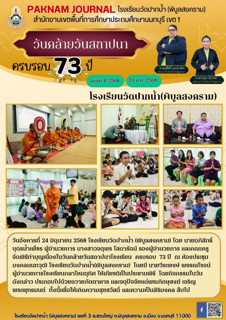 กลุ่มโรงเรียนเมืองนนท์ 1โรงเรียนวัดปากน้ำ(พิบูลสงคราม) ทำบุญครบรอบ 73 ปี วันคล้ายวันสถาปนาโรงเรียน30 กันยายน 202530 กันยายน 2025โรงเรียน วัดปากน้ำ(พิบูลสงคราม)อ่านต่อ
