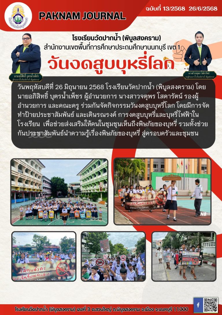 กลุ่มโรงเรียนเมืองนนท์ 1โรงเรียนวัดปากน้ำ(พิบูลสงคราม) จัดกิจกรรม วันงดสูบบุหรี่โลก 256830 กันยายน 202530 กันยายน 2025โรงเรียน วัดปากน้ำ(พิบูลสงคราม)อ่านต่อ
