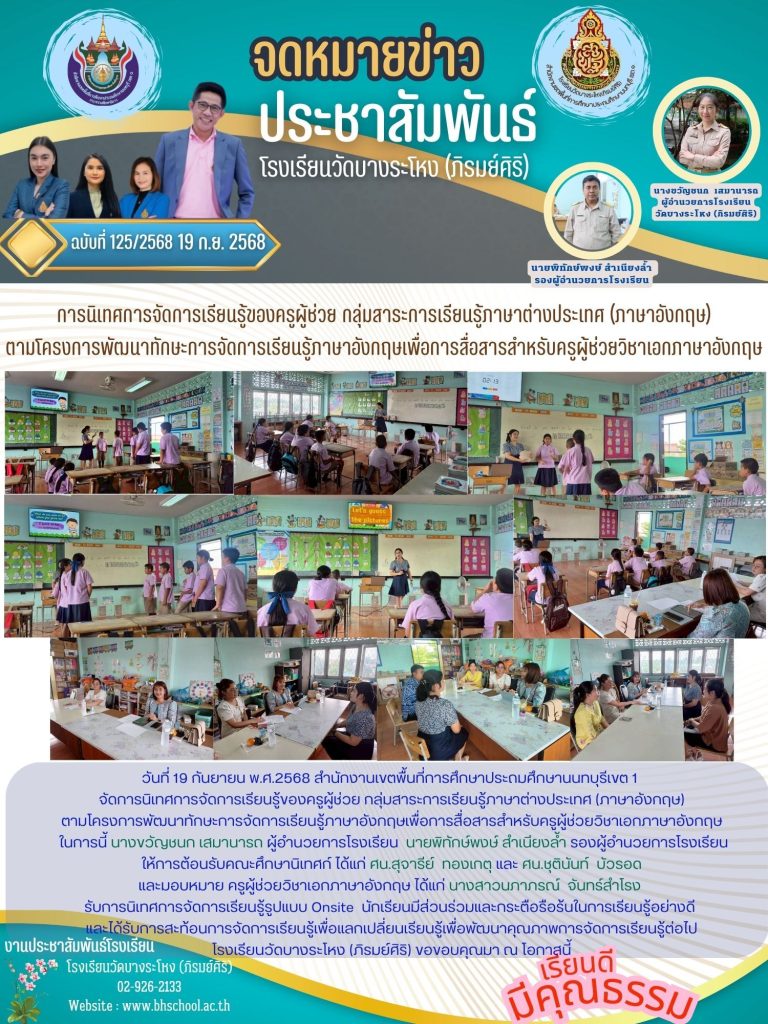 กลุ่มโรงเรียนเมืองนนท์ 2การนิเทศการจัดการเรียนรู้ของครูผู้ช่วย กลุ่มสาระการรียนรู้ต่างประเทศ (ภาษาอังกฤษ) ตามโครงการพัฒนาทักษะการจัดการเรียนรู้ภาษาอังกฤษเพื่อการสื่อสารสำหรับครูผู้ช่วยวิชาเอกภาษาอังกฤษ โรงเรียนวัดบางระโหง (ภิรมย์ศิริ)25 กันยายน 202525 กันยายน 2025โรงเรียน วัดบางระโหง(ภิรมย์ศิริ)อ่านต่อ
