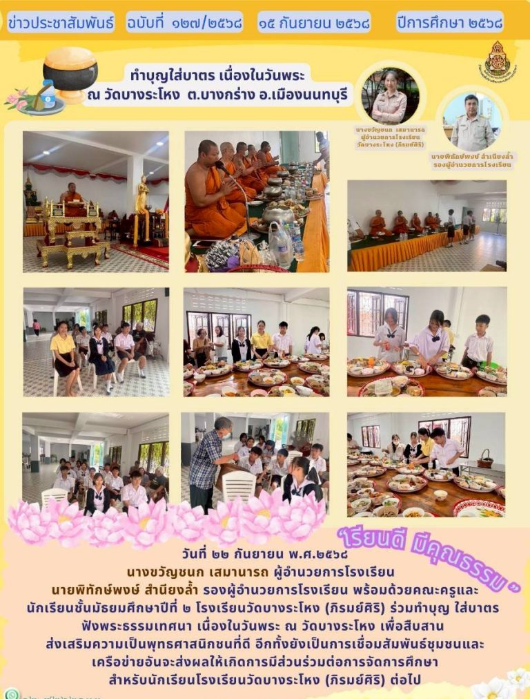 กลุ่มโรงเรียนเมืองนนท์ 2ทำบุญใส่บาตร เนื่องในวันพระโรงเรียนวัดบางระโหง (ภิรมย์ศิริ)25 กันยายน 202525 กันยายน 2025โรงเรียน วัดบางระโหง(ภิรมย์ศิริ)อ่านต่อ
