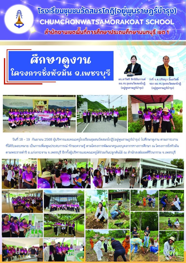 กลุ่มโรงเรียนเมืองนนท์ 1กิจกรรมศึกษาดูงาน ณ โครงการชั่งหัวมัน จ.เพชรบุรี6 ตุลาคม 2025ชุมชนวัดสมรโกฏิ(อยู่พูนราษฎร์บำรุง) โรงเรียนอ่านต่อ