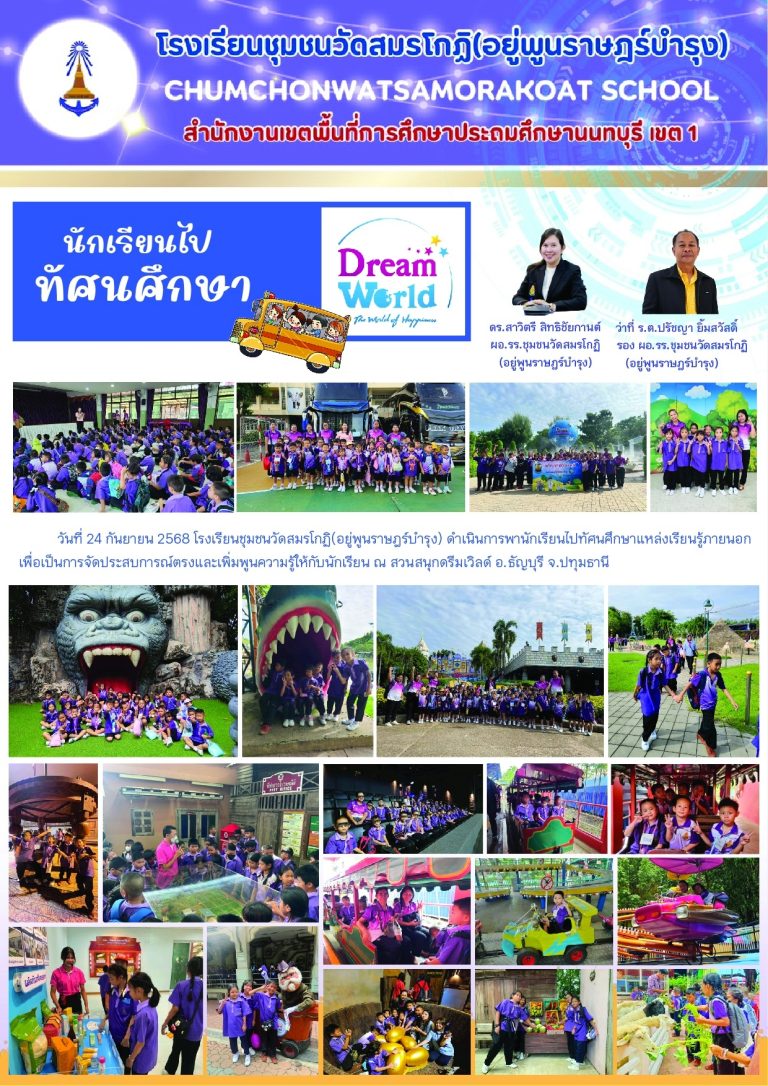 กลุ่มโรงเรียนเมืองนนท์ 1กิจกรรมทัศนศึกษา ณ สวนสนุกดรีมเวิลด์ จ.ปทุมธานี6 ตุลาคม 2025ชุมชนวัดสมรโกฏิ(อยู่พูนราษฎร์บำรุง) โรงเรียนอ่านต่อ