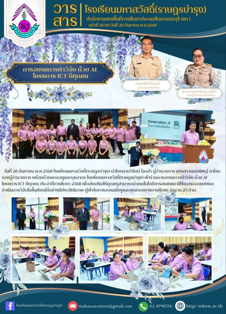 กลุ่มโรงเรียนอำเภอบางกรวยข่าวประชาสัมพันธ์การอบรมการทำวิจัย ด้วย AI โครงการ ICT ดีทุกคน โรงเรียนมหาสวัสดิ์(ราษฎรบำรุง)9 ตุลาคม 20259 ตุลาคม 2025มหาสวัสดิ์(ราษฎรบำรุง) โรงเรียนอ่านต่อ
