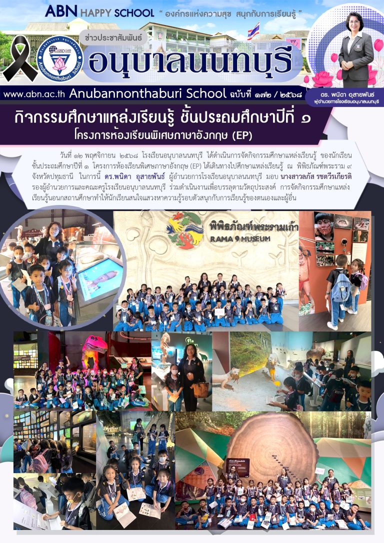 กลุ่มโรงเรียนเมืองนนท์ 1กิจกรรมศึกษาแหล่งเรียนรู้ ชั้นประถมศึกษาปีที่ 1 EP13 พฤศจิกายน 2025อนุบาลนนทบุรี โรงเรียนอ่านต่อ