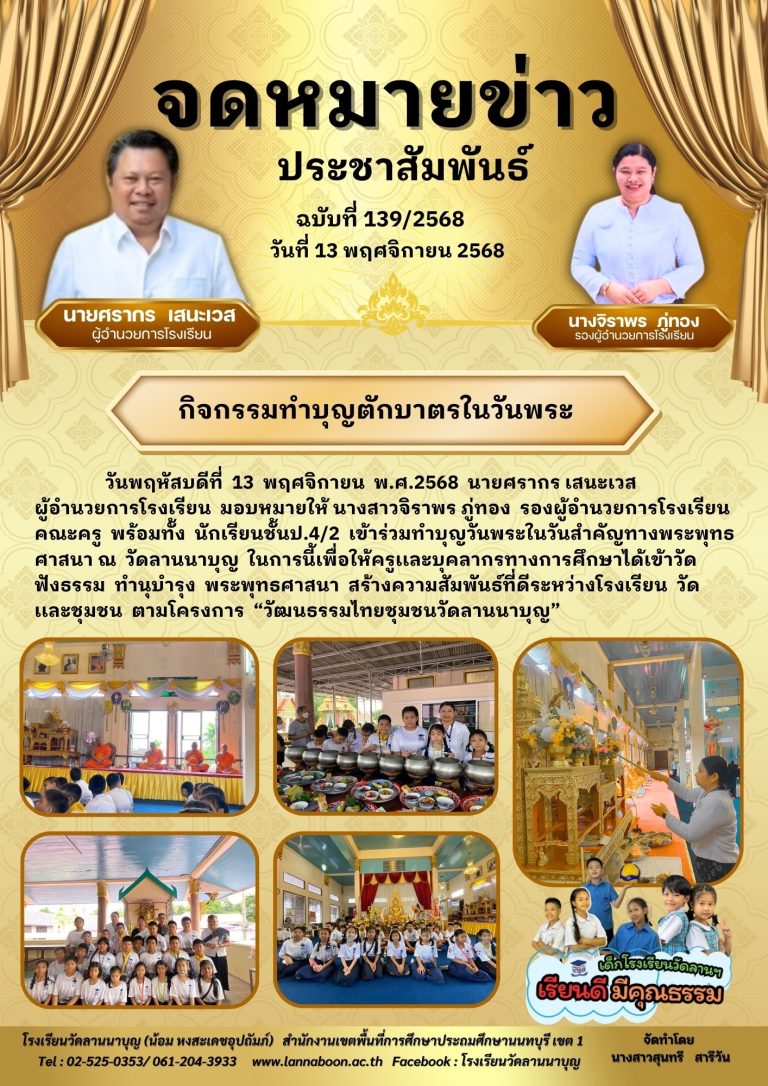 กลุ่มโรงเรียนเมืองนนท์ 1“กิจกรรมทำบุตักบาตรในวันพระ”13 พฤศจิกายน 202516 พฤศจิกายน 2025วัดลานนาบุญ (น้อม หงสะเดชอุปถัมภ์) โรงเรียนอ่านต่อ