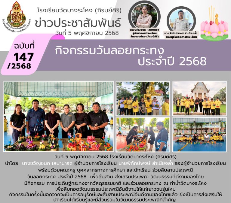 กลุ่มโรงเรียนเมืองนนท์ 2กิจกรรมวันลอยกระทง ประจำปี 2568 โรงเรียนวัดบางระโหง (ภิรมย์ศิริ)13 พฤศจิกายน 202513 พฤศจิกายน 2025โรงเรียน วัดบางระโหง(ภิรมย์ศิริ)อ่านต่อ