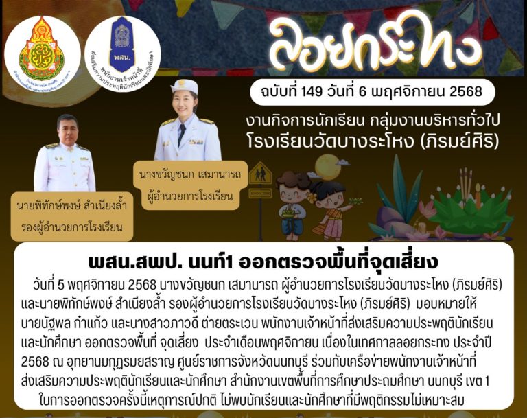กลุ่มโรงเรียนเมืองนนท์ 2พสน. เฝ้าระวังความปลอดภัยช่วงเทศกาลลอยกระทง โรงเรียนวัดบางระโหง (ภิรมย์ศิริ)13 พฤศจิกายน 202513 พฤศจิกายน 2025โรงเรียน วัดบางระโหง(ภิรมย์ศิริ)อ่านต่อ
