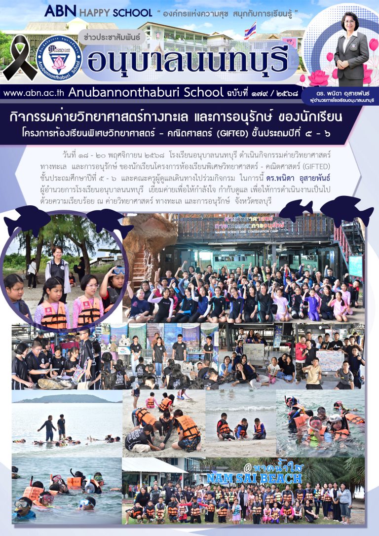 กลุ่มโรงเรียนเมืองนนท์ 1กิจกรรมค่ายวิทยาศาสตร์ทางทะเล และการอนุรักษ์ ของนักเรียนห้องเรียนพิเศษวิทยาศาสตร์-คณิตศาสตร์(GIFTED) ชั้นประถมศึกษาปีที่ 5-618 พฤศจิกายน 202524 พฤศจิกายน 2025อนุบาลนนทบุรี โรงเรียนอ่านต่อ