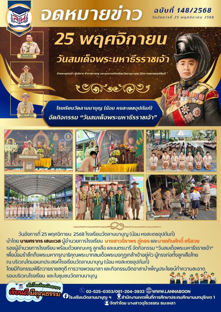 กลุ่มโรงเรียนเมืองนนท์ 1“กิจกรรมวันสมเด็จพระมหาธีรราชเจ้า”25 พฤศจิกายน 202528 พฤศจิกายน 2025วัดลานนาบุญ (น้อม หงสะเดชอุปถัมภ์) โรงเรียนอ่านต่อ