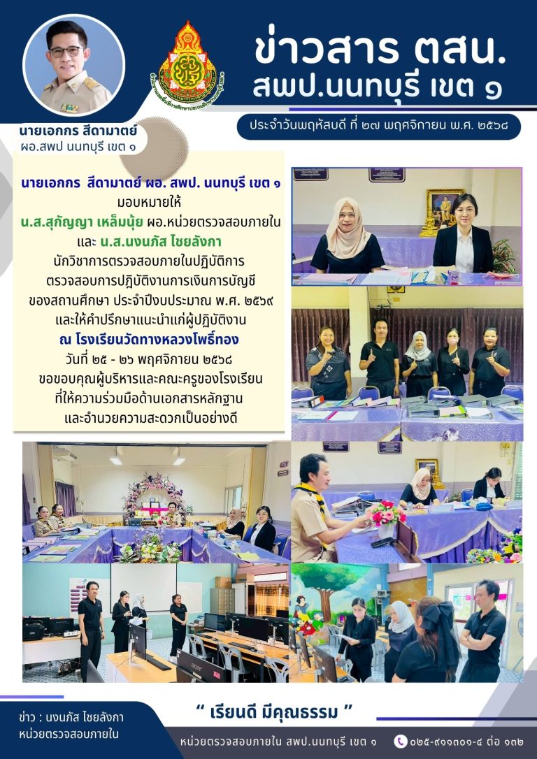 ข่าวกิจกรรมหน่วยตรวจสอบภายใน ออกตรวจการเงินการบัญชี ณ โรงเรียนวัดทางหลวงโพธิ์ทอง วันที่ 25 – 26 พฤศจิกายน 256828 พฤศจิกายน 2025นงนภัส ไชยลังกาอ่านต่อ