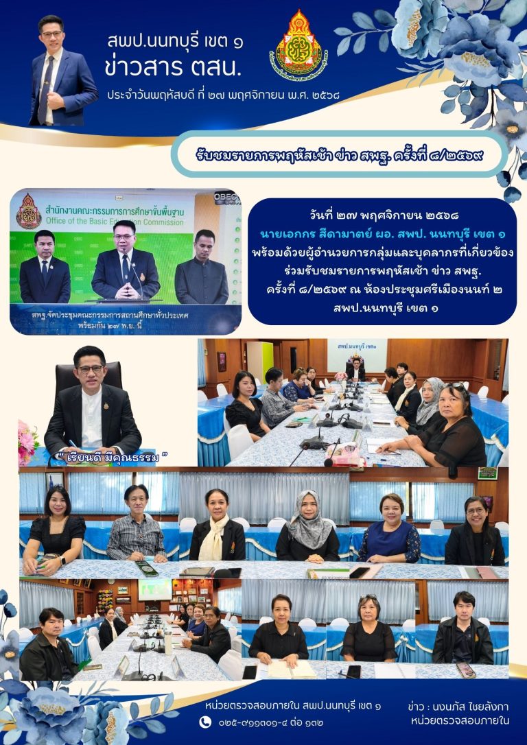 ข่าวกิจกรรมรับชมรายการพฤหัสเช้า สพฐ.ครั้งที่ 8/256928 พฤศจิกายน 202528 พฤศจิกายน 2025นงนภัส ไชยลังกาอ่านต่อ
