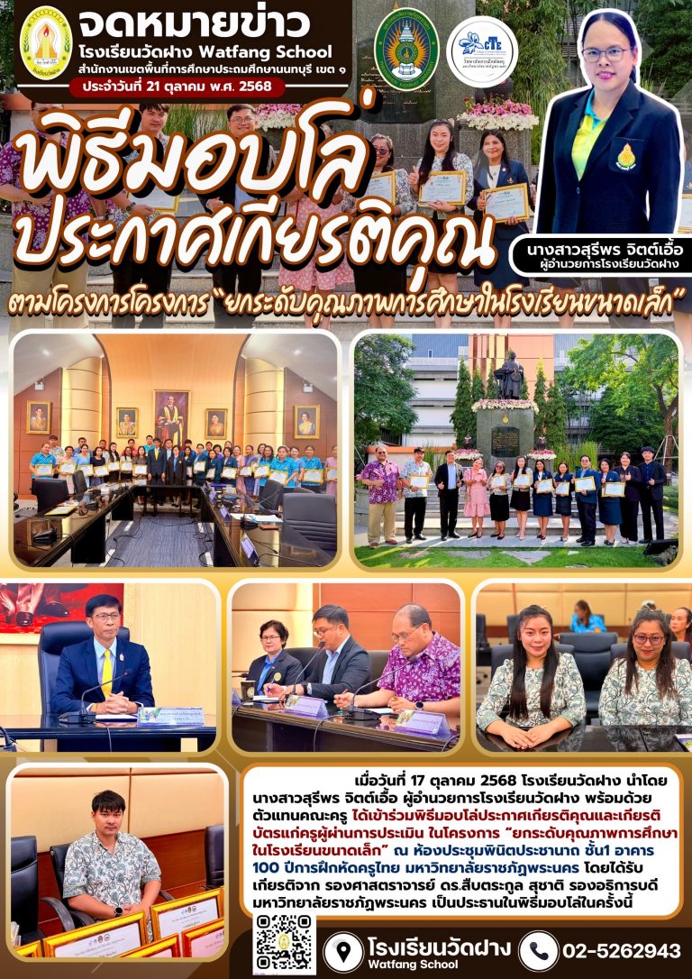 กลุ่มโรงเรียนเมืองนนท์ 1จดหมายข่าวโรงเรียนวัดฝาง: พิธีมอบโล่ประกาศเกียรติคุณ24 ตุลาคม 202524 ตุลาคม 2025โรงเรียน วัดฝางอ่านต่อ