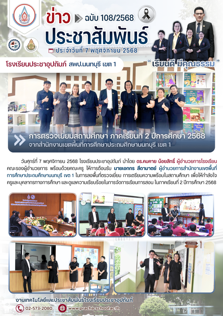 กลุ่มโรงเรียนเมืองนนท์ 1จดหมายข่าวโรงเรียนประชาอุปถัมภ์ ฉ108/2568 “การตรวจเยี่ยมสถานศึกษา ภาคเรียนที่ 2 ปีการศึกษา 2568”7 พฤศจิกายน 2025ประชาอุปถัมภ์ โรงเรียนอ่านต่อ