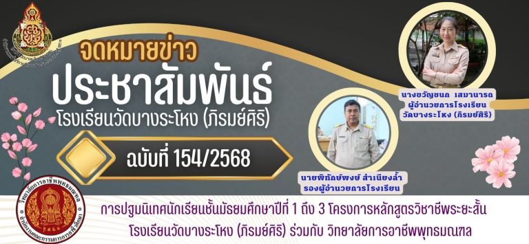 กลุ่มโรงเรียนเมืองนนท์ 2การปฐมนิเทศนักเรียนชั้นมัธยมศึกษาปีที่ 1 ถึง 3 โครงการหลักสูตรวิชาชีพระยะสั้น โรงเรียนวัดบางระโหง (ภิรมย์ศิริ) ร่วมกับวิทยาลัยอาชีพพุทธมณฑล17 พฤศจิกายน 202517 พฤศจิกายน 2025โรงเรียน วัดบางระโหง(ภิรมย์ศิริ)อ่านต่อ
