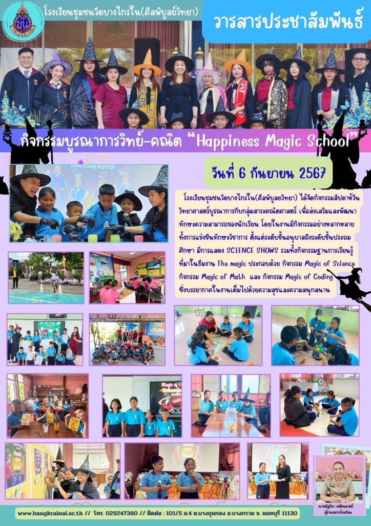 โรงเรียนชุมชนวัดบางไกรใน(ศีลพิบูลย์วิทยา) ได้จัดกิจกรรมบูรณาการวิทย์-คณิต “Happiness Magic School”