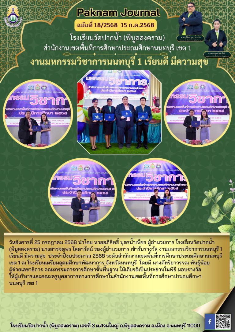 กลุ่มโรงเรียนเมืองนนท์ 1โรงเรียนวัดปากน้ำ (พิบูลสงคราม) เข้ารับรางวัล งานมหกรรมวิชาการนนทบุรี 1 เรียนดี มีความสุขประจำปีงบประมาณ 2568 30 กันยายน 202530 กันยายน 2025โรงเรียน วัดปากน้ำ(พิบูลสงคราม)อ่านต่อ