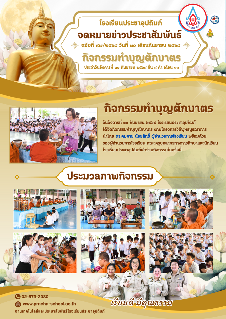 กลุ่มโรงเรียนเมืองนนท์ 1จดหมายข่าวโรงเรียนประชาอุปถัมภ์ ฉ97/2568 “กิจกรรมทำบุญตักบาตร ประจำวันอังคารที่ 30 กันยายน 2568”2 ตุลาคม 20252 ตุลาคม 2025ประชาอุปถัมภ์ โรงเรียนอ่านต่อ