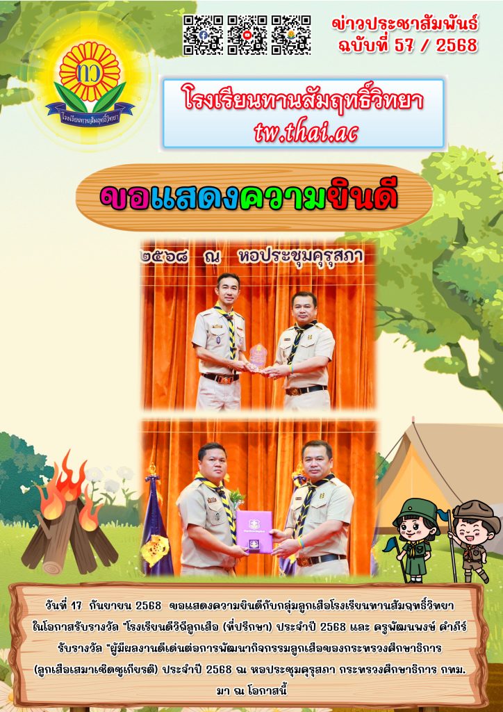 17/09/68 ขอแสดงความยินดีกับกลุ่มลูกเสือโรงเรียนทานสัมฤทธิ์วิทยา ในโอกาสรับรางวัล