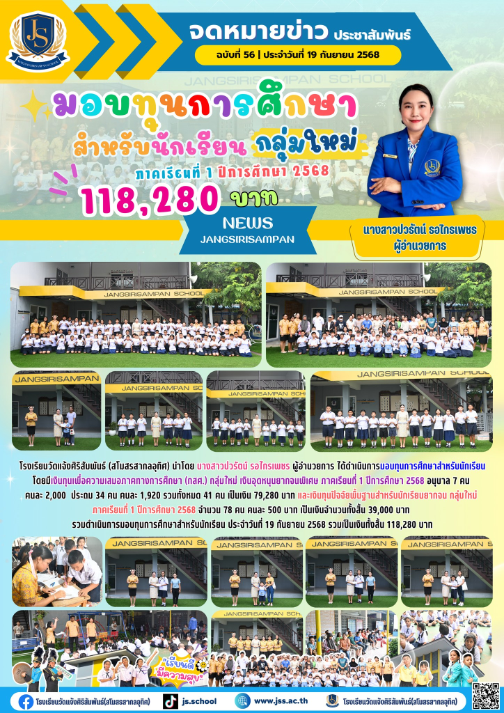 รวมดำเนินการมอบทุนการศึกษาสำหรับนักเรียน ประจำวันที่ 19 กันยายน 2568 รวมเป็นเงินทั้งสิ้น 118,280 บาท