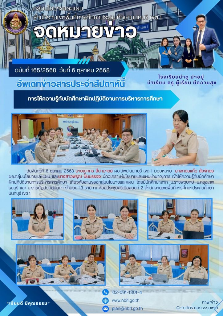 กลุ่มนโยบายและแผนการอบรมเชิงปฏิบัติการการบริหารและการยกระดับคุณภาพและมาตรฐานการศึกษาโรงเรียนขนาดเล็ก สังกัดสำนักงานเขตพื้นที่การศึกษาประถมศึกษานนทบุรี เขต 1 ประจำปีงบประมาณ พ.ศ. 25688 กันยายน 2025ณภัทร ทองธรรมชาติอ่านต่อ