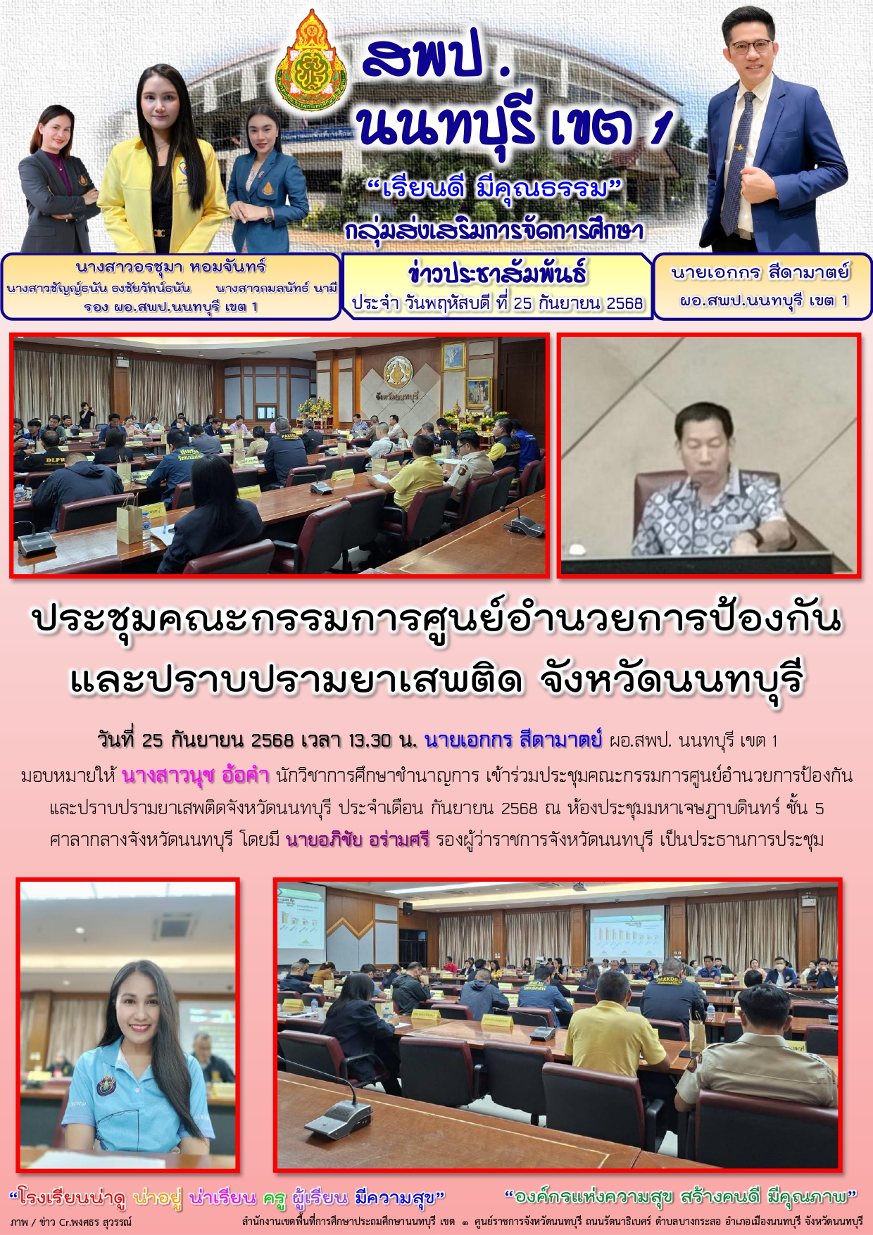 กลุ่มส่งเสริมการจัดการศึกษาประชุมคณะกรรมการรักษาความมั่นคงและความสงบเรียบร้อยจังหวัดนนทบุรี ครั้งที่ 9/25687 ตุลาคม 2025พงศธร สุวรรณ์อ่านต่อ