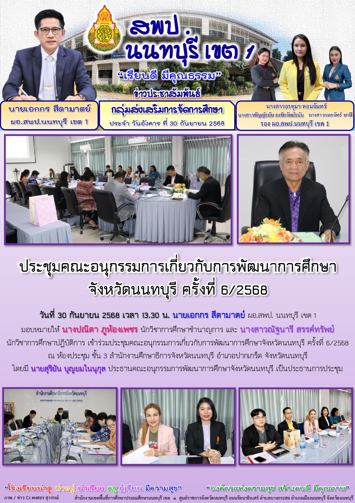 กลุ่มส่งเสริมการจัดการศึกษาประชุมคณะกรรมการรักษาความมั่นคงและความสงบเรียบร้อยจังหวัดนนทบุรี ครั้งที่ 9/25687 ตุลาคม 2025พงศธร สุวรรณ์อ่านต่อ