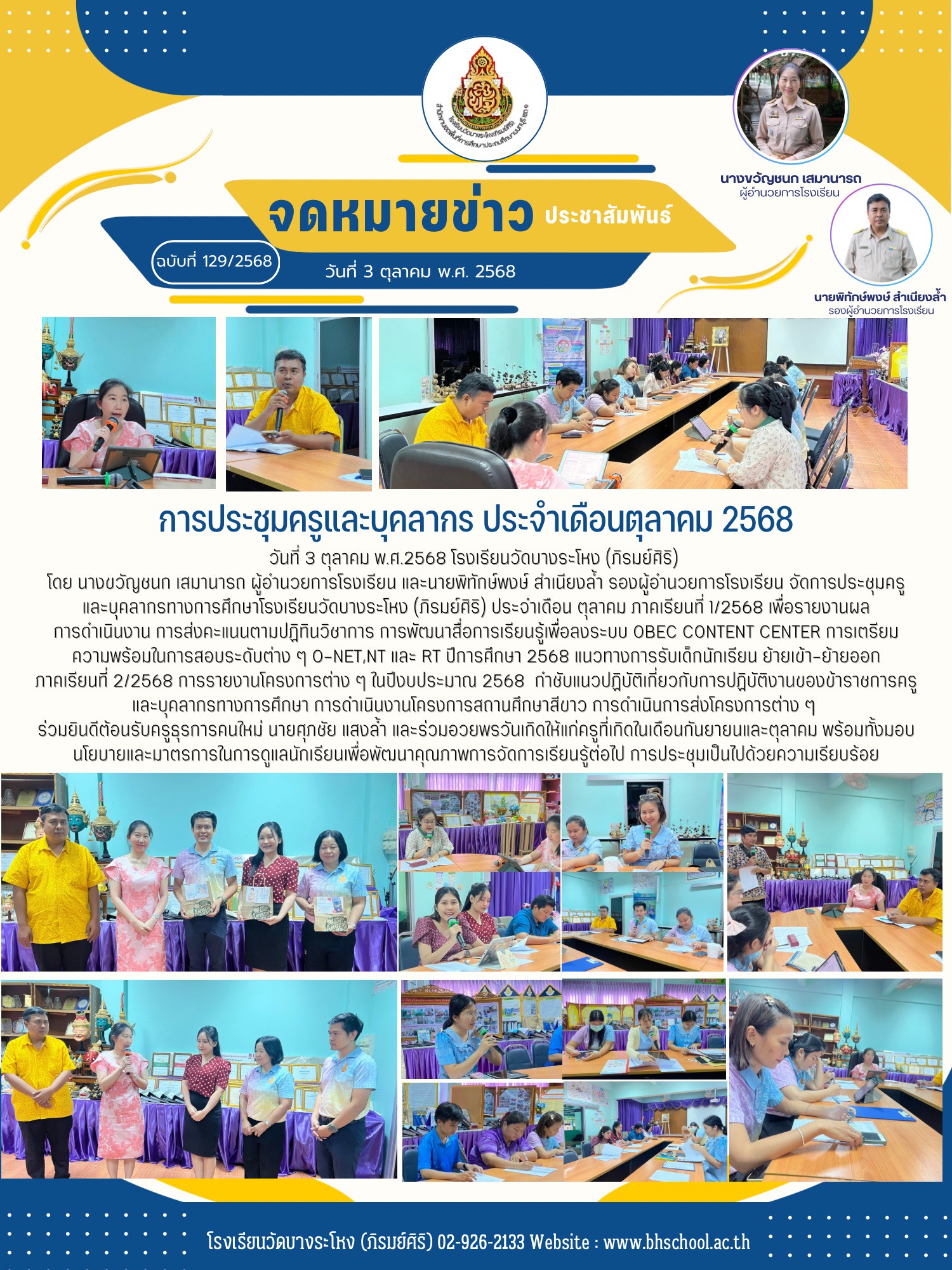 กลุ่มโรงเรียนเมืองนนท์ 2พิธีเคารพธงชาติไทยและร้องเพลงชาติไทย1 ตุลาคม 20251 ตุลาคม 2025โรงเรียน วัดแจ้งศิริสัมพันธ์(สโมสรสากลอุทิศ)อ่านต่อ
