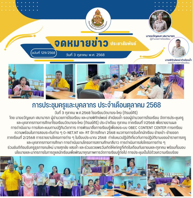 กลุ่มโรงเรียนเมืองนนท์ 2การประชุมครูและบุคลากร ประจำเดือนตุลาคม 2568 โรงเรียนวัดบางระโหง (ภิรมย์ศิริ)9 ตุลาคม 20259 ตุลาคม 2025โรงเรียน วัดบางระโหง(ภิรมย์ศิริ)อ่านต่อ