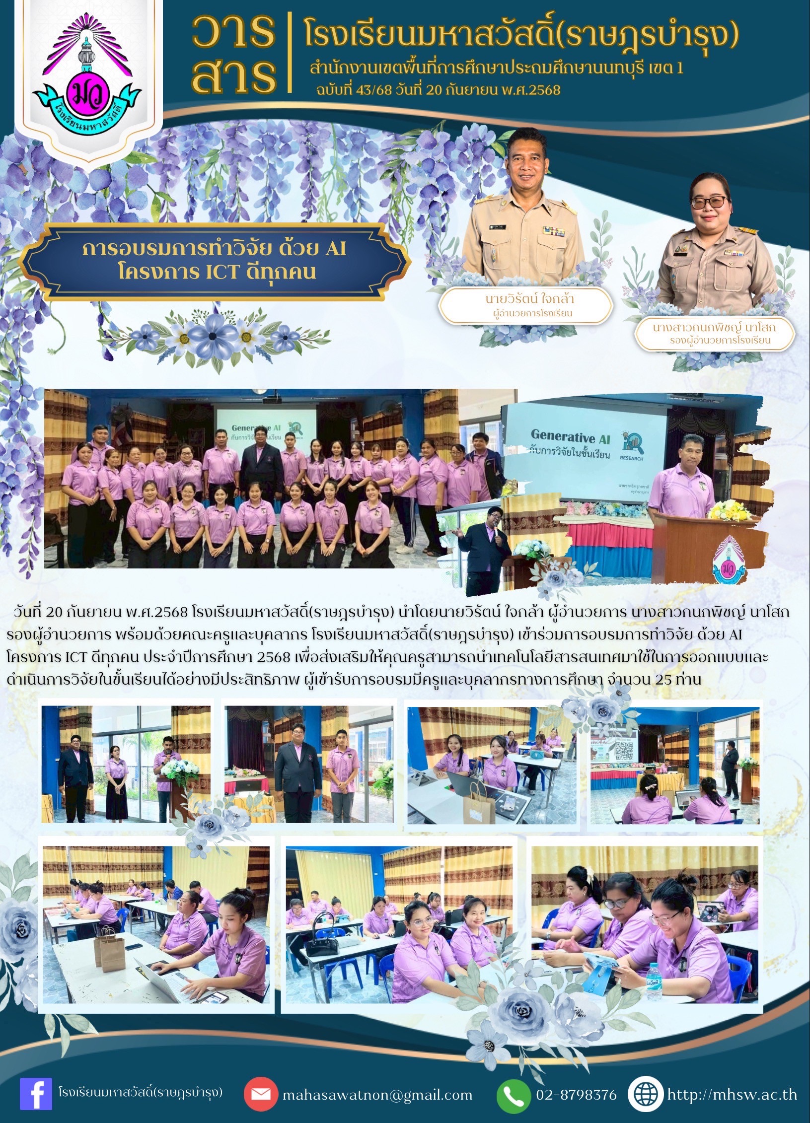 กลุ่มโรงเรียนอำเภอบางกรวยข่าวกิจกรรมข่าวประชาสัมพันธ์ตลาดนัดวัยเรียน สานฝันสู่อาชีพ เดือนกันยายน 2568 โรงเรียนมหาสวัสดิ์(ราษฎรบำรุง)9 ตุลาคม 2025มหาสวัสดิ์(ราษฎรบำรุง) โรงเรียนอ่านต่อ