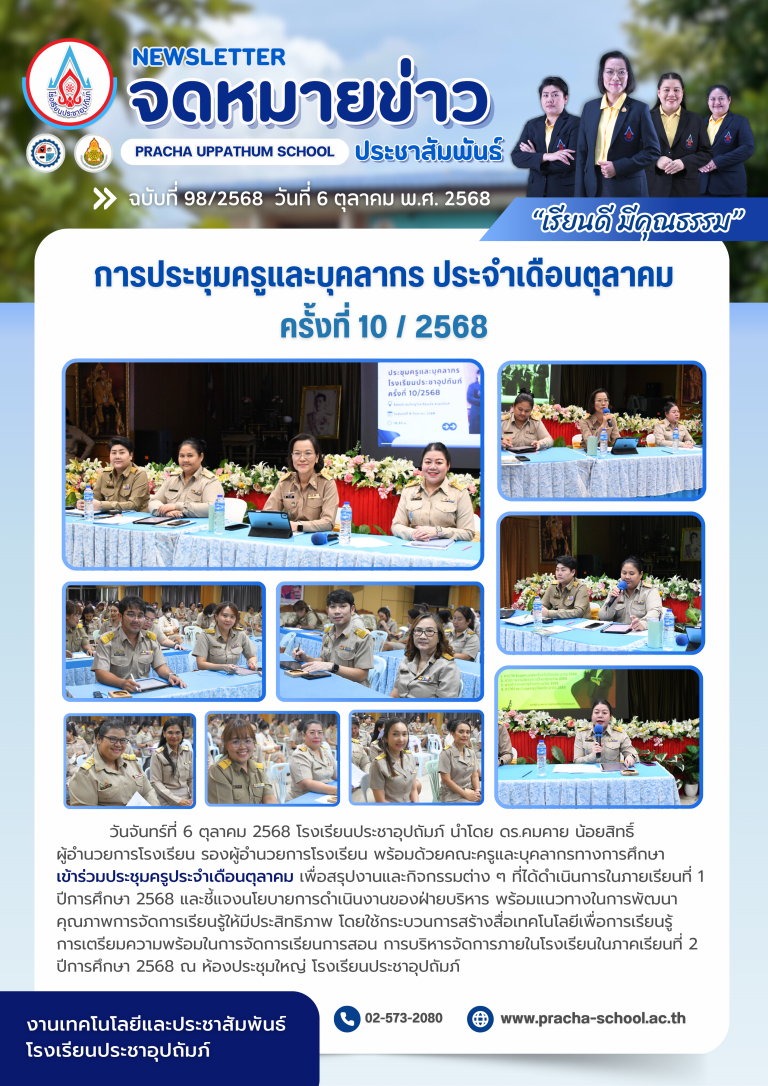 กลุ่มโรงเรียนเมืองนนท์ 1จดหมายข่าวโรงเรียนประชาอุปถัมภ์ ฉ98/2568 “การประชุมครูและบุคลากร ประจำเดือนตุลาคม ครั้งที่ 10/2568”10 ตุลาคม 202510 ตุลาคม 2025ประชาอุปถัมภ์ โรงเรียนอ่านต่อ