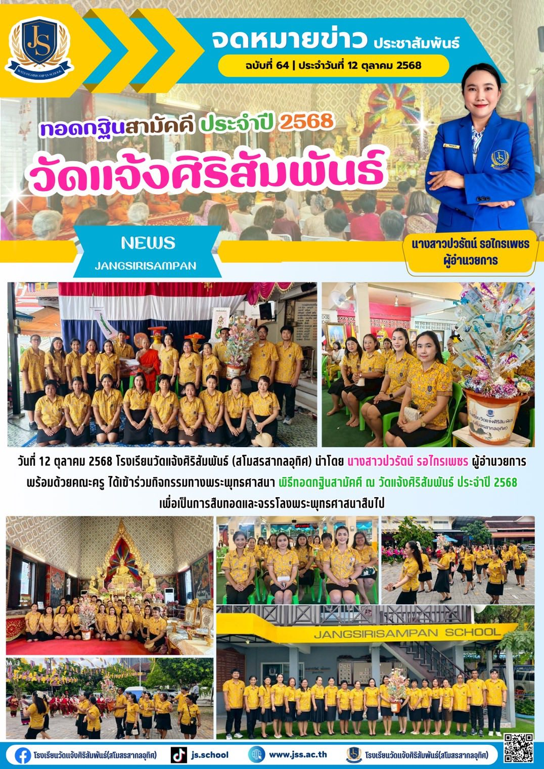 ได้เข้าร่วมกิจกรรมทางพระพุทธศาสนา พิธีทอดกฐินสามัคคี ณ วัดแจ้งศิริสัมพันธ์ ประจำปี 2568 เพื่อเป็นการสืบทอดและจรรโลงพระพุทธศาสนาสืบไป
