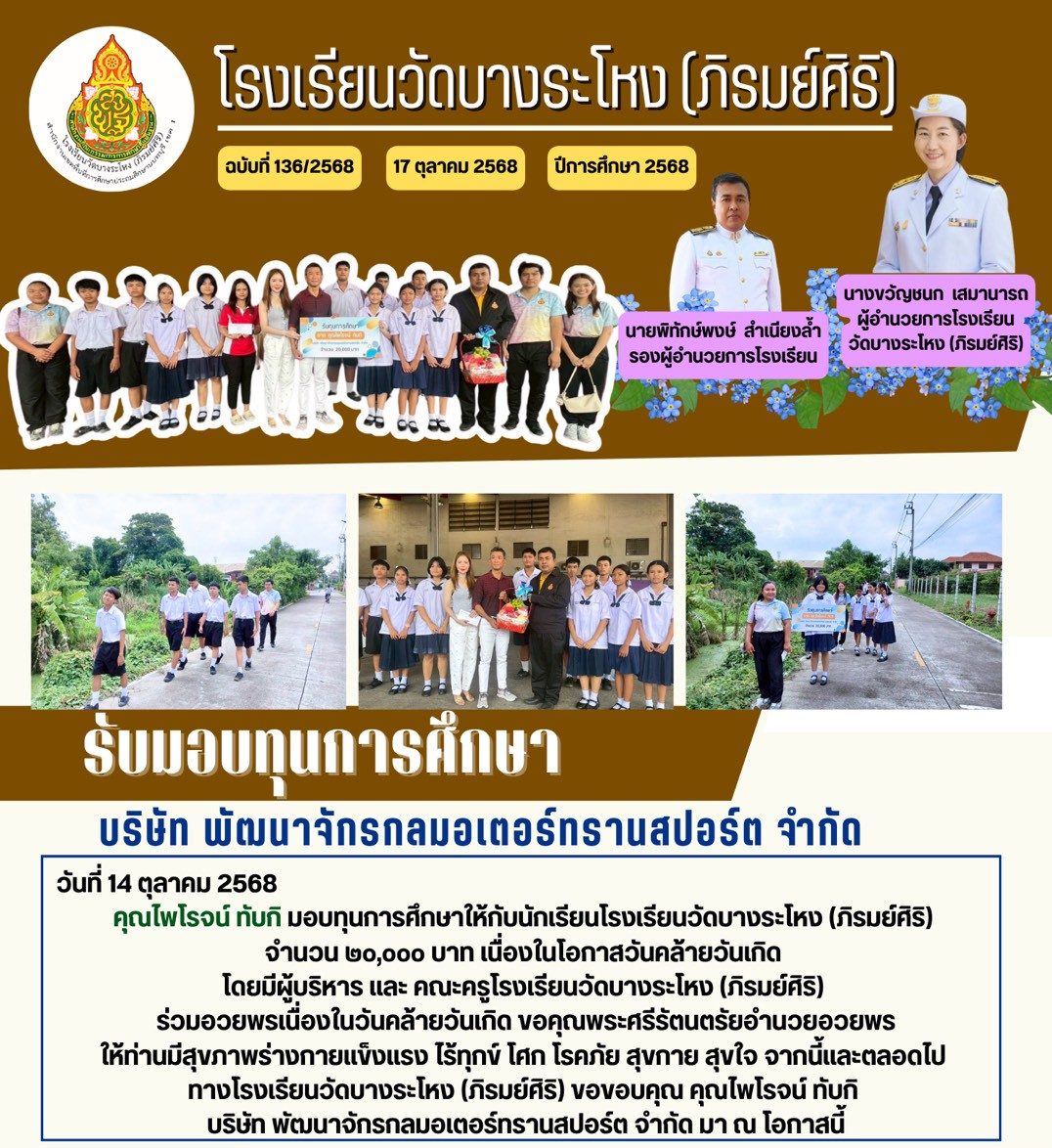 กลุ่มโรงเรียนเมืองนนท์ 2วันนวมินธารามหาราช13 ตุลาคม 202513 ตุลาคม 2025ไทยรัฐวิทยา ๕๕ (วัดโบสถ์ดอนพรหม) โรงเรียนอ่านต่อ