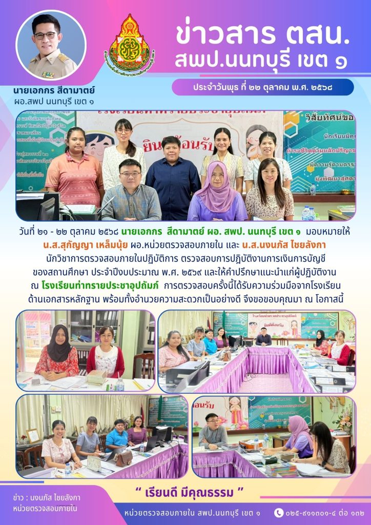 หน่วยตรวจสอบภายในตรวจสอบการดำเนินงานงบประมาณรายจ่ายประจำปีงบประมาณ พ.ศ. ๒๕๖๗ งบลงทุน รายการค่าครุภัณฑ์ที่มีราคาต่อหน่วยต่ำกว่า ๑ ล้านบาท ณ โรงเรียนวัดบัวขวัญ (มีทับราษฎร์บำรุง) โรงเรียนวัดตำหนักใต้ (วิลาศโอสถานนท์นุเคราะห์) และ โรงเรียนป่าไม้อุทิศ ๙2 กรกฎาคม 20252 กรกฎาคม 2025นงนภัส ไชยลังกาอ่านต่อ