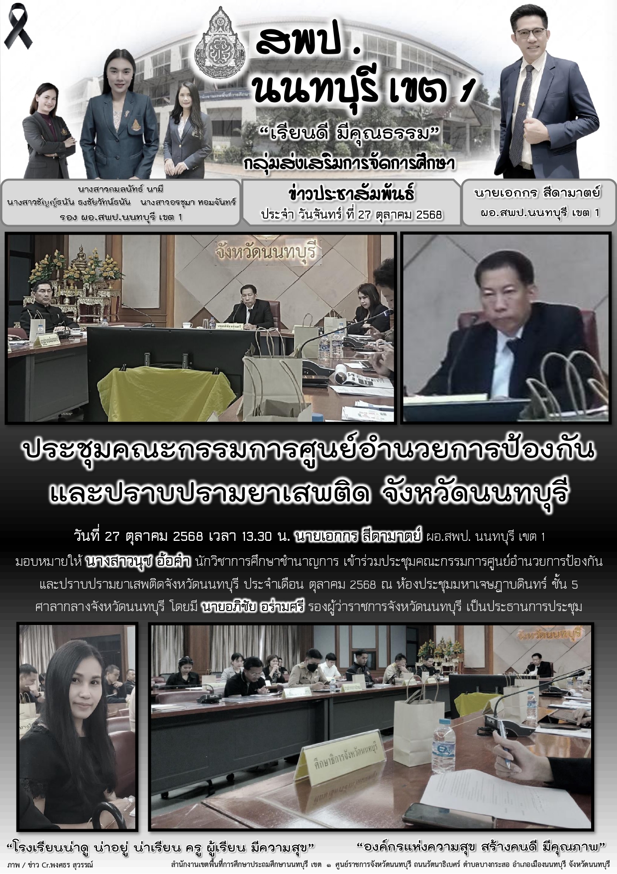กลุ่มส่งเสริมการจัดการศึกษาประชุมคณะกรรมการรักษาความมั่นคง และความสงบเรียบร้อยจังหวัดนนทบุรี ครั้งที่ 10/256831 ตุลาคม 202531 ตุลาคม 2025พงศธร สุวรรณ์อ่านต่อ