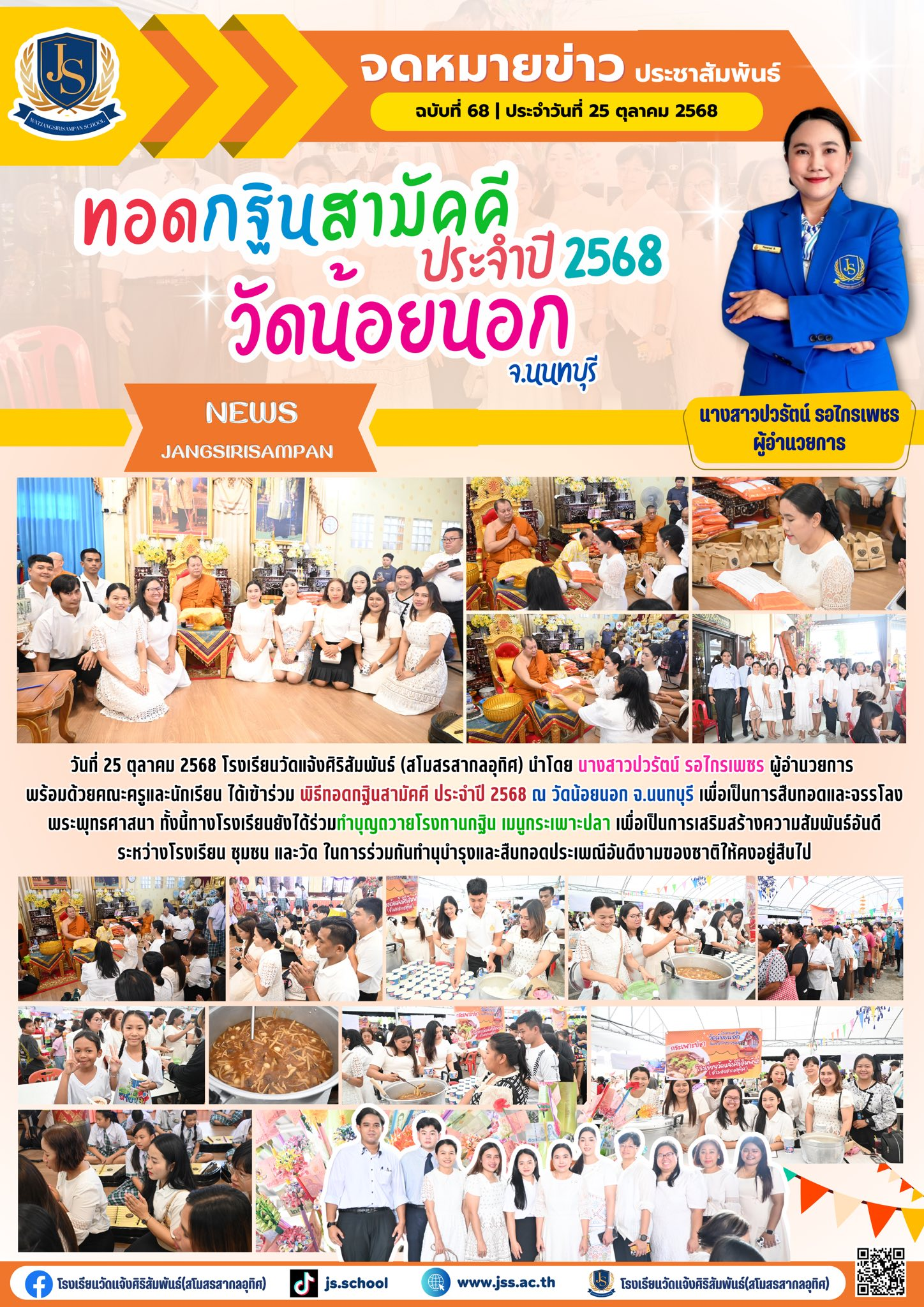 วันที่ 25 ตุลาคม 2568 โรงเรียนวัดแจ้งศิริสัมพันธ์ (สโมสรสากลอุทิศ) นำโดย นางสาวปวรัตน์ รอไกรเพชร ผู้อำนวยการ พร้อมด้วยคณะครูและนักเรียน